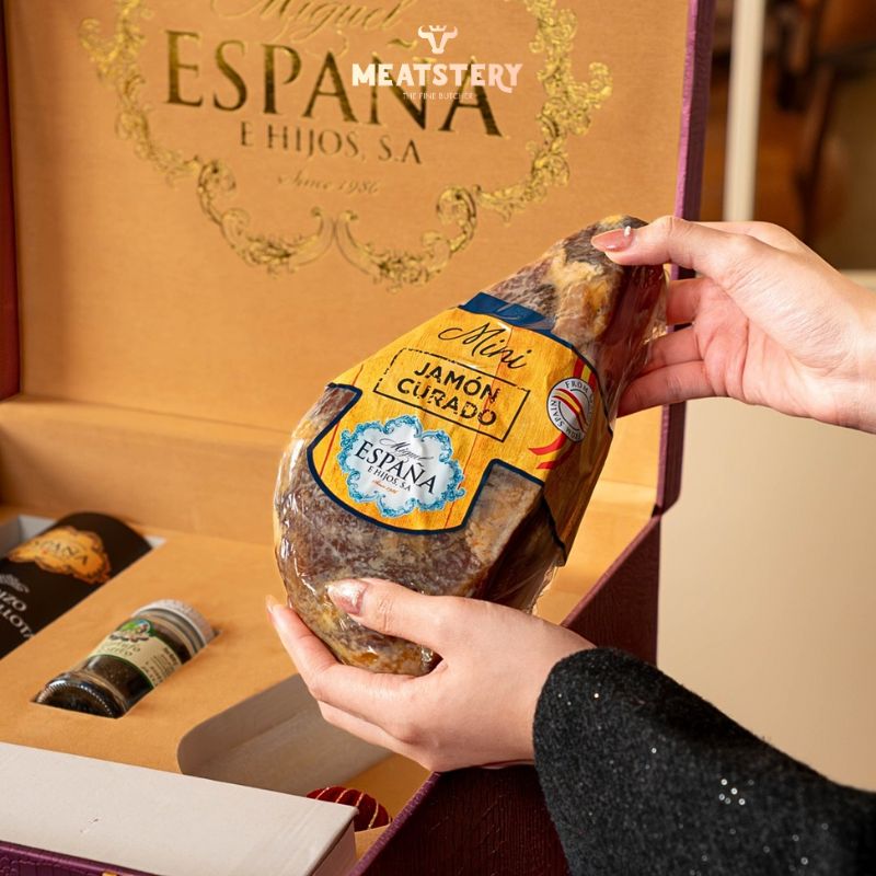 Để sở hữu set quà Đùi Heo Muối Espana Luxury MS EL01 chính hãng, chất lượng cao và được đóng gói sang trọng, bạn có thể liên hệ trực tiếp Meatstery – đơn vị chuyên cung cấp các dòng thịt nhập khẩu và quà tặng ẩm thực cao cấp. Meatstery cam kết nguồn gốc rõ ràng, sản phẩm được bảo quản đúng tiêu chuẩn cùng dịch vụ tư vấn tận tâm, giúp bạn dễ dàng lựa chọn món quà phù hợp cho Tết, biếu tặng đối tác hay những dịp đặc biệt.