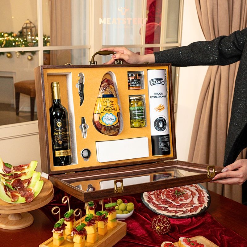 Set quà tặng đùi heo muối Espana Premium là lựa chọn lý tưởng dành cho những ai tìm kiếm một món quà vừa sang trọng vừa tinh tế. Lấy cảm hứng từ văn hóa ẩm thực Tây Ban Nha, set quà quy tụ những sản phẩm cao cấp được tuyển chọn kỹ lưỡng, nổi bật với đùi heo muối hảo hạng kết hợp cùng rượu vang và các món ăn kèm tinh tế.
